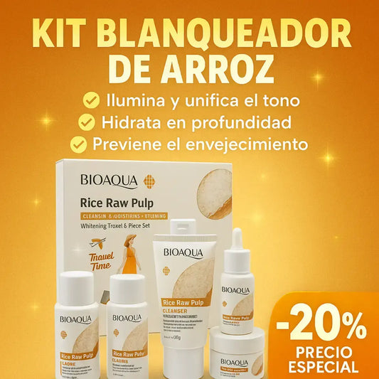 ✨ Kit Facial Bioaqua Rice Raw Pulp – Rutina 5 en 1 para Piel Radiante 🌾💧